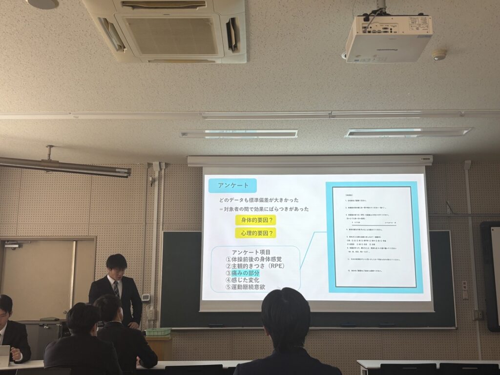健康スポーツ系コース04生による卒業論文中間発表会が開催されました。